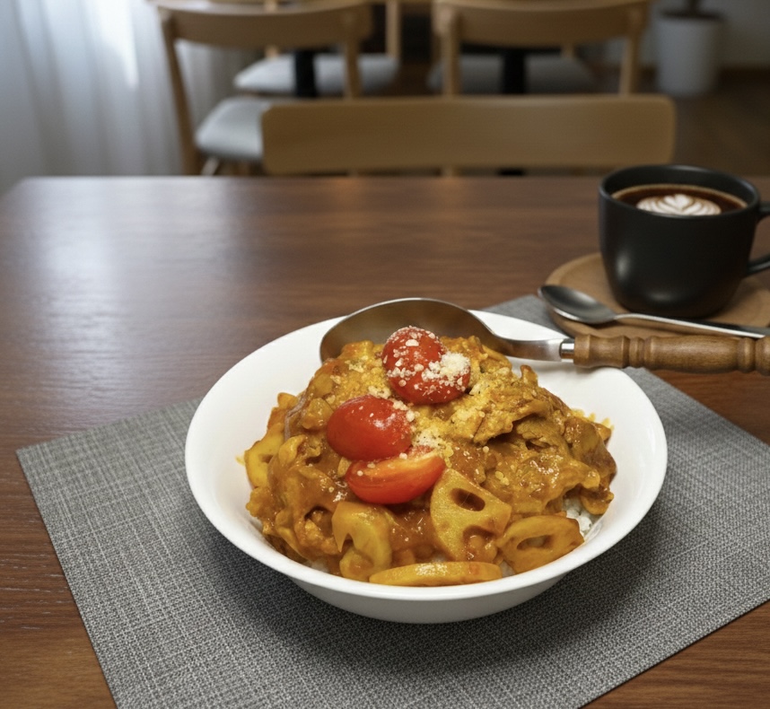 おうちごはん 市販パスタソースで簡単!レンコンと豚肉のミートソース丼🍝