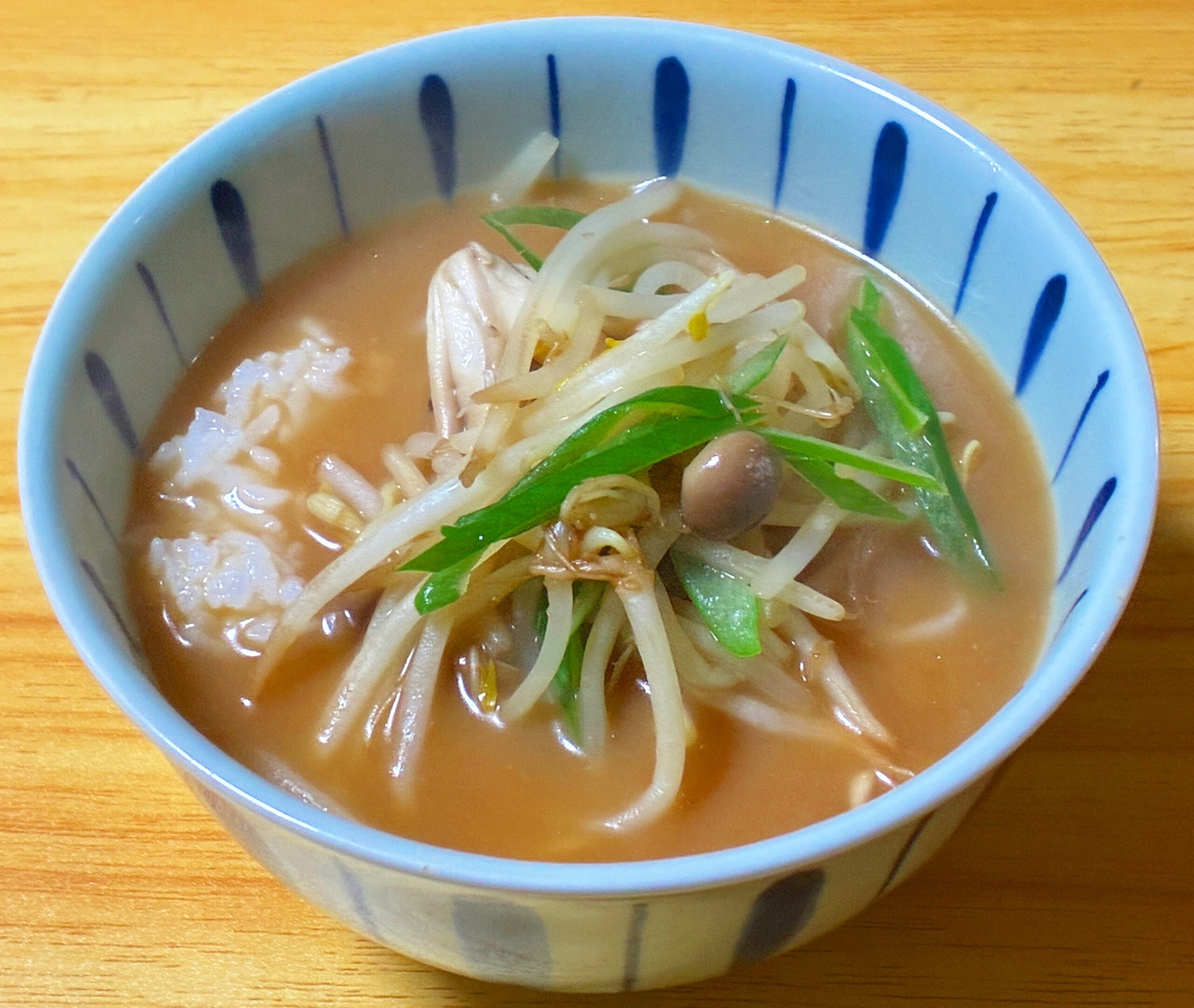 鍋スープを使ってかんたんに。とんこつ醤油雑炊🥣